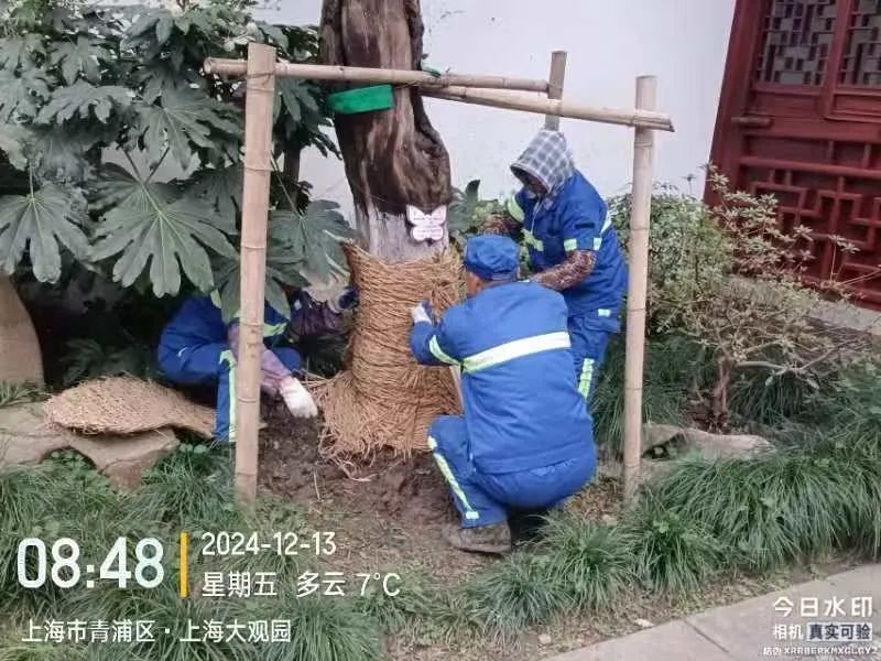 文化旅游公司下属青西投资公司制定应对低温寒流的计划,及时处理问题,做好记录反馈;大观园采取多种绿化养护措施,确保景区老树花草安全过冬。