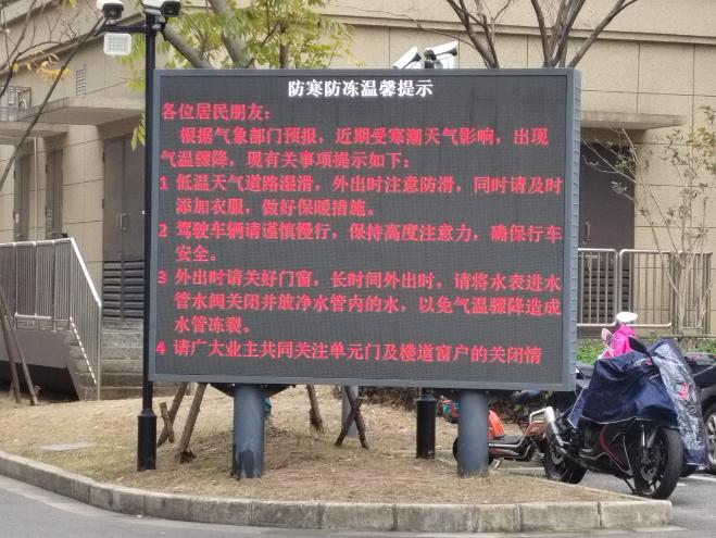 新城公司下属物业公司利用电子屏幕和公告栏提前发布寒潮预警信息,提醒居民做好个人防寒准备;盘点并丰富防滑草席等防寒防冻应急物资,确保物资储备和应急设施到位;加强检查,确保水、电、气设备的安全运行。