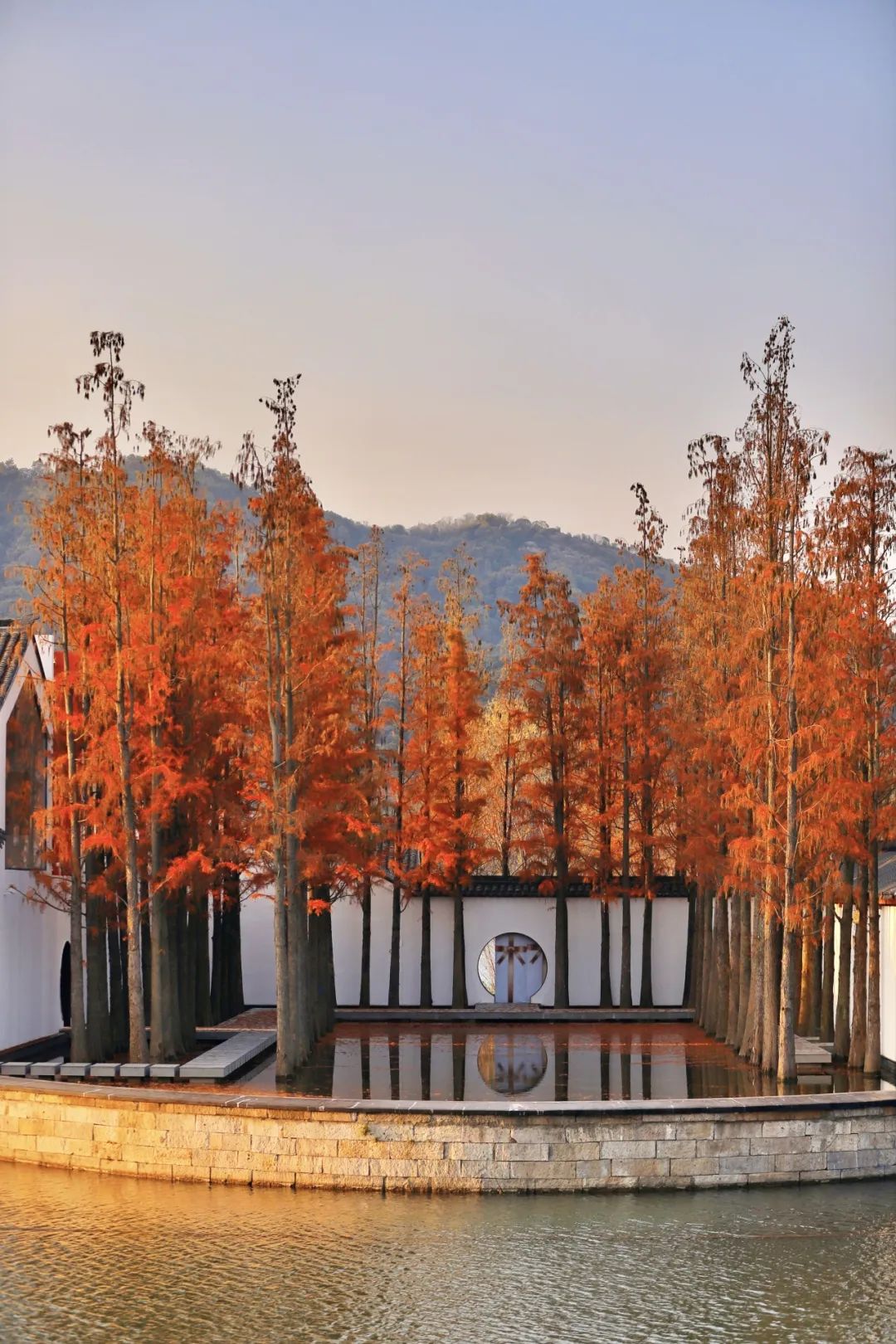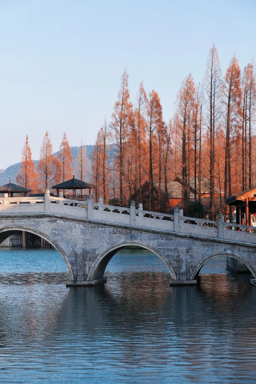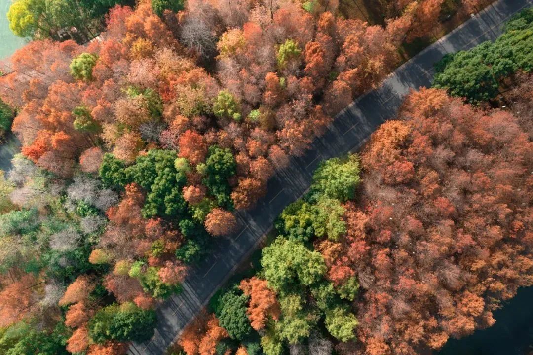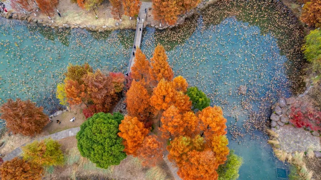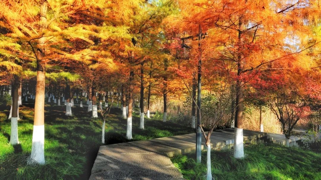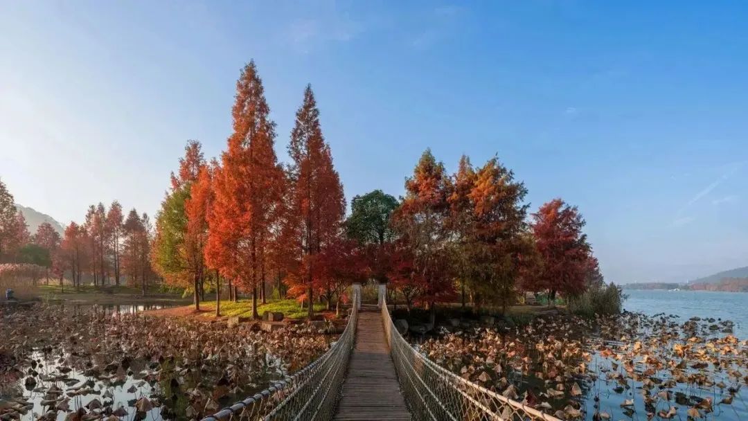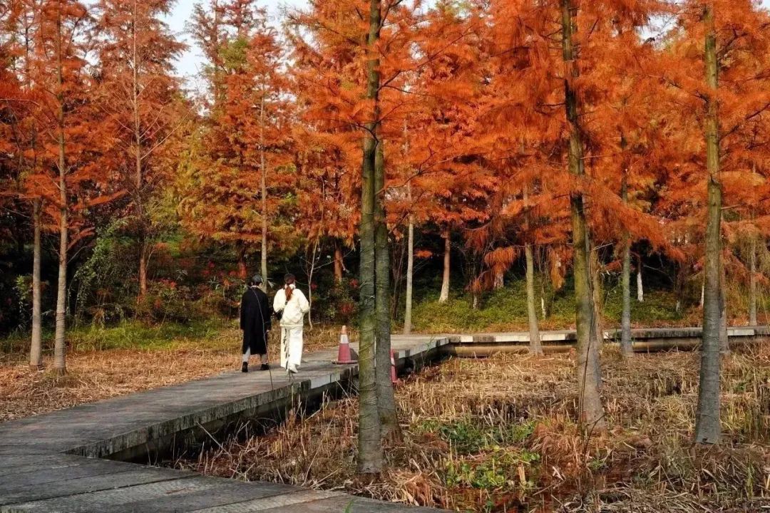 现在湘湖红杉林已经进入最美阶段