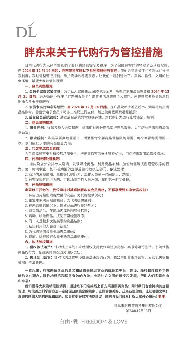 近日,胖东来发布了历史上最严格的代购行为管理措施,以优化购物体验,打击代购行为。