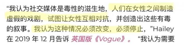 海莉曾经说过,希望停止制造试图使女性对立的话题,