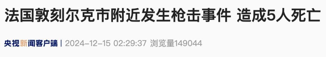 法国北部敦刻尔克市周边的枪击事件发生在当地时间12月14日,造成5人死亡。