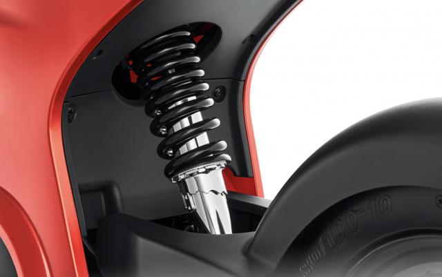 该车采用大直径一体式车架设计,后部配有单减震、液压前减震、盘刹、液晶仪表屏,支持巡航控制等配置,座椅高度为 700 mm,轴距为 1130 mm。
