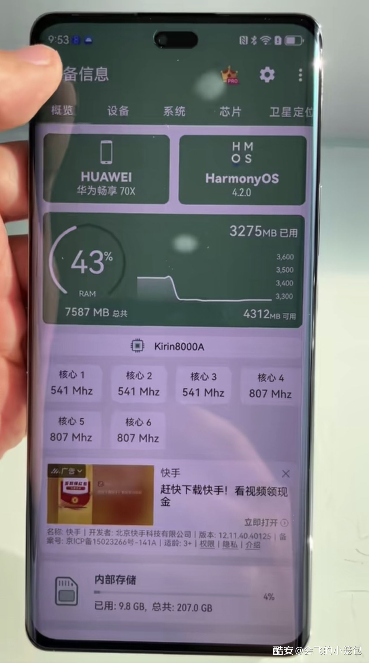 大家应该都很熟悉麒麟8000的跑分,安兔兔55-60w左右,Geekbench 6单核950分,多核2678分,整体成绩甚至比骁龙66分。 Gen1/骁龙778G更强,是一个很好的中端芯片。