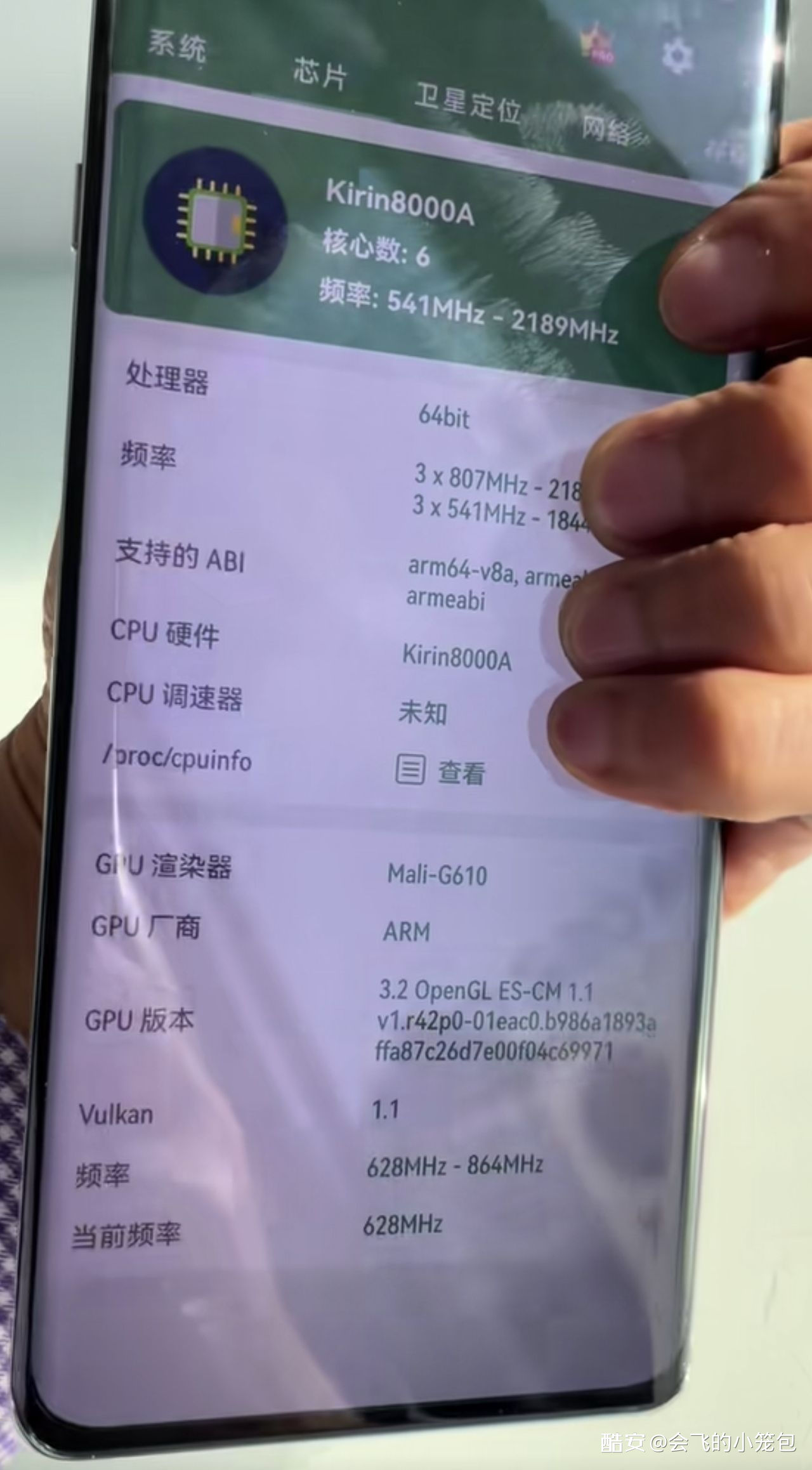与麒麟8000的不同之处在于缺少一颗大核和一颗小核,CPU的频率也随之下降。