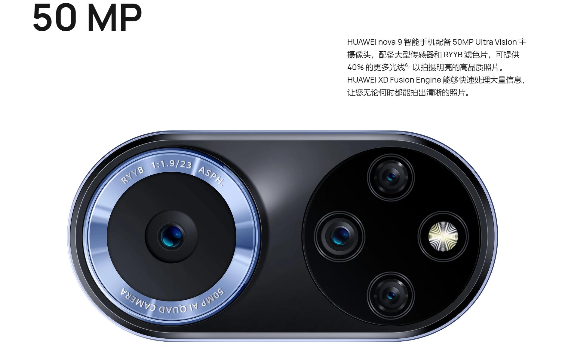 结合已知参数值和市场定位,华为享受70X主摄的高概率是华为nova 9系列主摄,传感器可能是IMX766或类似物体,感光面积为1/1.56英尺。与传统的RGGB滤色阵型相比,RYYB滤色阵型的进光率提高了40%。