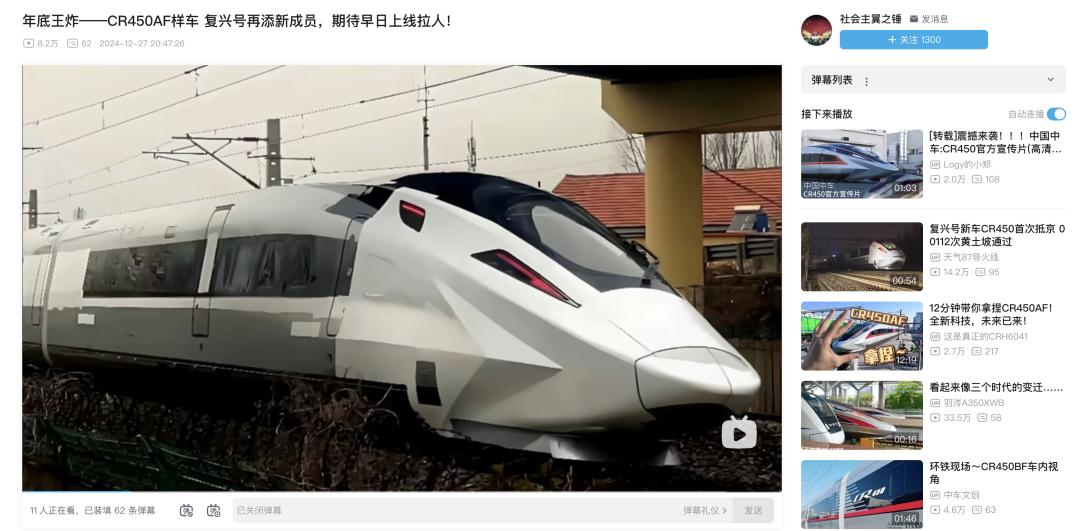 时速400公里的高速动车组列车,编号为CR450科技创新工程。