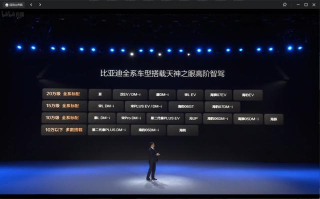 新闻发布会上宣布,比亚迪品牌将全系配备天神之眼高级智驾,首批将在 21 搭载新车型。最低限度 7.88 万起海鸥智驾版车型配备天神之眼高级智驾,其它车型配备天神之眼。 10 万级或以上车型是整个系统的标准。
