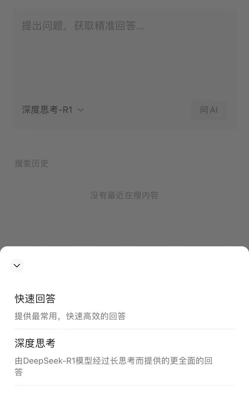 二月十六日,微信官方宣布搜索内部测试访问DeepSeek;早些时候,腾讯元宝,微信,ima、许多腾讯产品,如腾讯文档、QQ浏览器、QQ音乐等,在接入混元大模型的同时,也接入了DeepSeek。 R1模型。