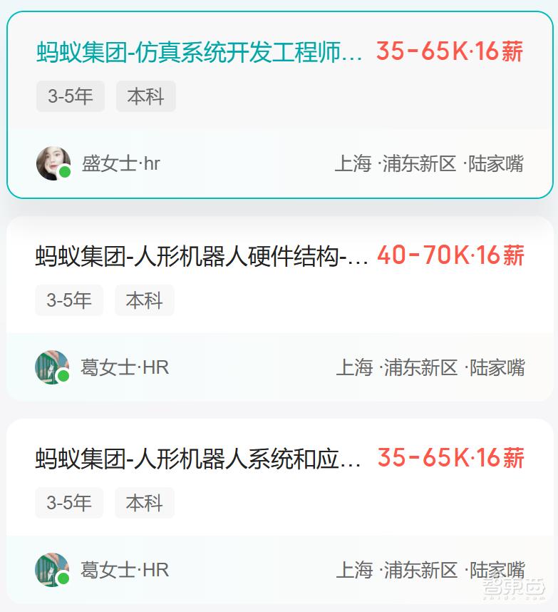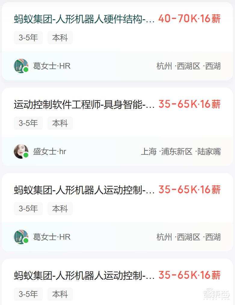 蚂蚁集团进入人形机器人,上海杭州14个岗位开放。
