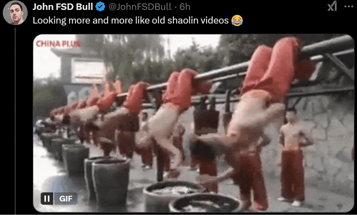 最新评论:越看越像人形机器人去少林寺训练学习,怀疑是中国功夫片的情景流出。