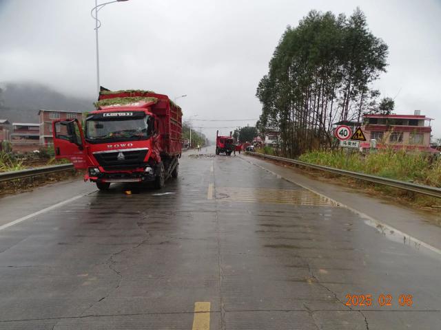 2 月 6 日 15 当时,来宾市合山市公安局交警大队的报警电话紧急传来。警方表示,在合山市, X621 在线马安村村委会的道路上,发生了两辆大卡车撞击的交通事故。接到报警后,值班民警迅速出动。当他们到达现场时,他们面前的景象一片狼藉:两辆卡车横跨道路中央,车前严重变形,损坏的车辆零部件遍地都是。