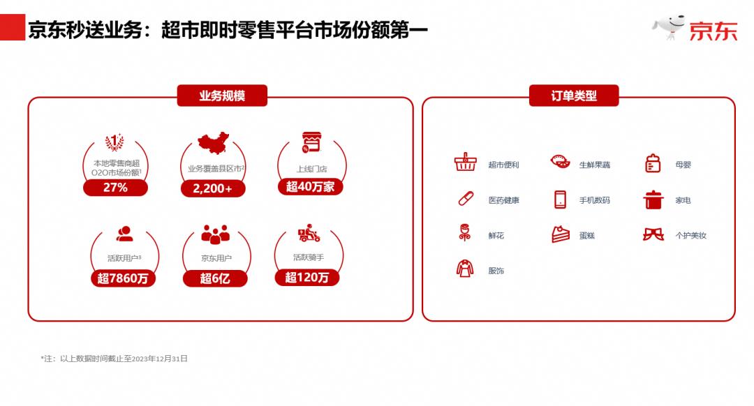 根据JD.COM2024年Q3的财务报告,在“国补”的影响下,JD.COM自营业务收入为2046亿元,同比增长4.8%。2024年Q2,JD.COM自营业务收入同比零增长。同时,2024年初,JD.COM设定了三个方向,即“三大必胜对决”。除了内容生态和开放生态,即时零售也在其中。
