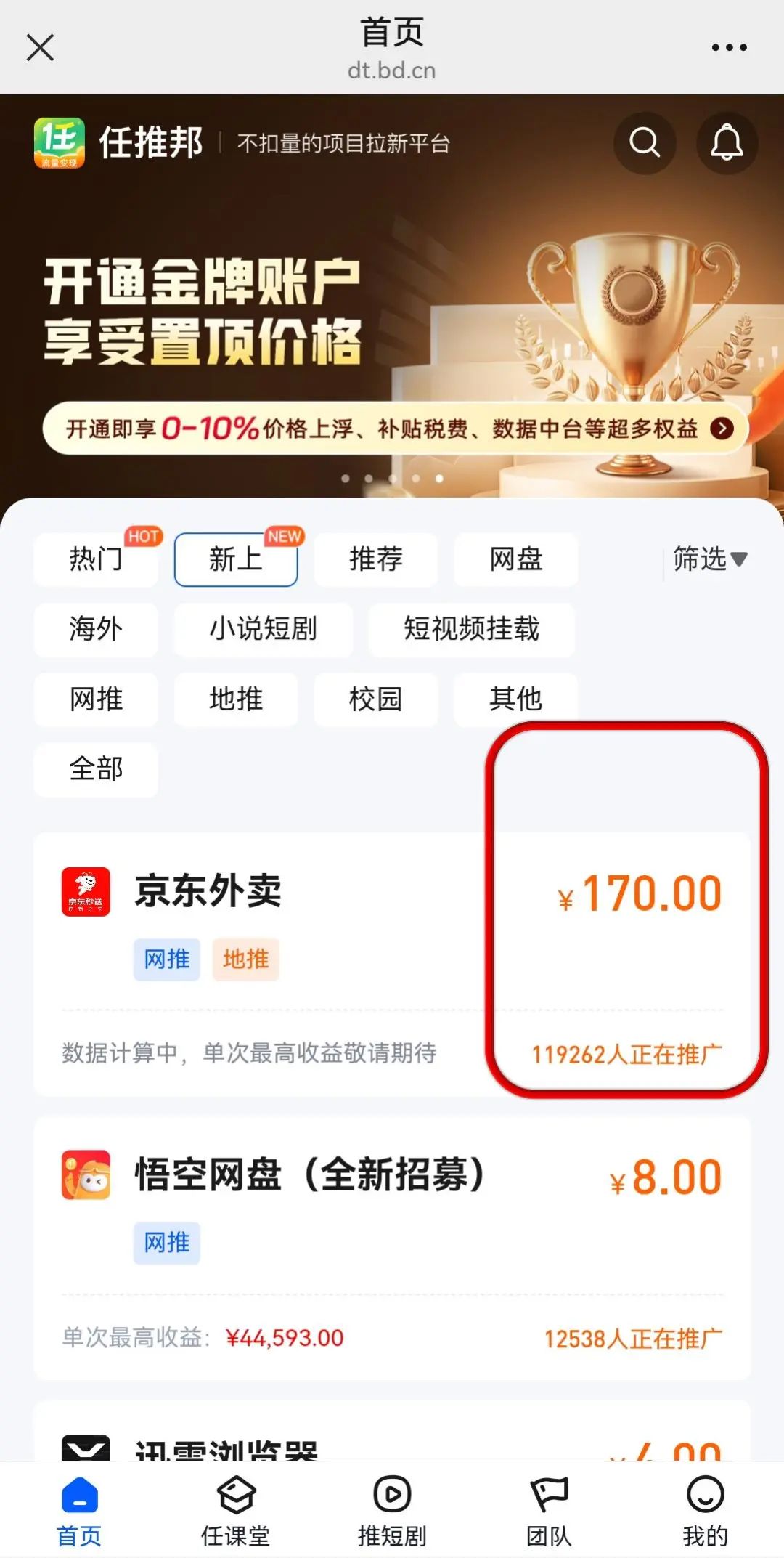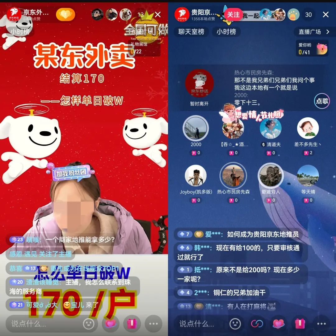 在小红书、抖音、微信微信官方账号上,无数关于JD.COM推送的消息几乎一夜之间火了起来。省团、街头推送联盟、任推邦等在线推送平台纷纷推出相关项目,各行各业的当地服务商也逐渐招募了圣贤和士兵。店铺170元的高薪让很多想赶上风口浪尖的玩家竞相进入——截至2月24日,仅在任推邦平台上,JD.COM就有11万多人推广外卖。