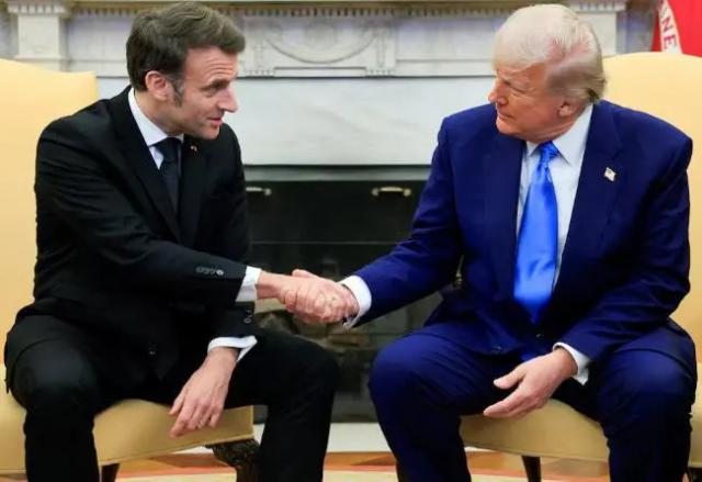 当地时间 2 月 24 日本,美国总统特朗普在白宫接待了法国总统马克龙,双方在会议前见到了记者。