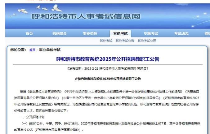 2025年呼和浩特市教育部门公开选聘教职工公告