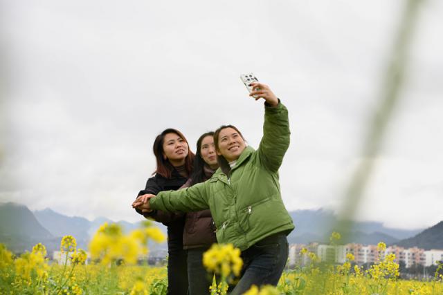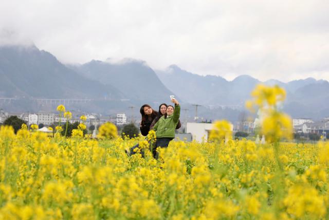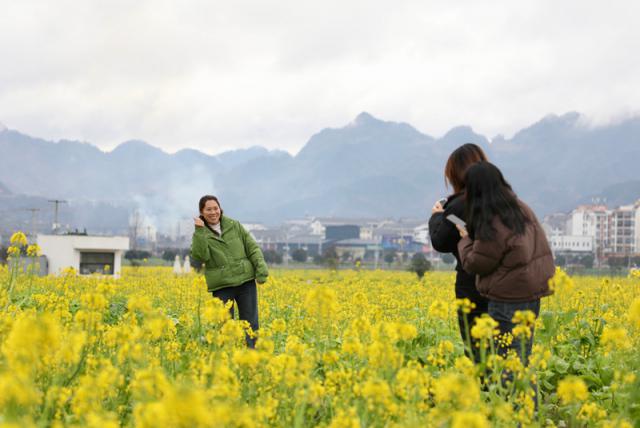 “我们来自正安。今天,我们邀请我们的好朋友一起看油菜花。这里的油菜花非常漂亮。听说今年会举办油菜花节,活动丰富。到时候我们肯定会再来的!”来自正安县的游客张瑞兴奋地分享道。