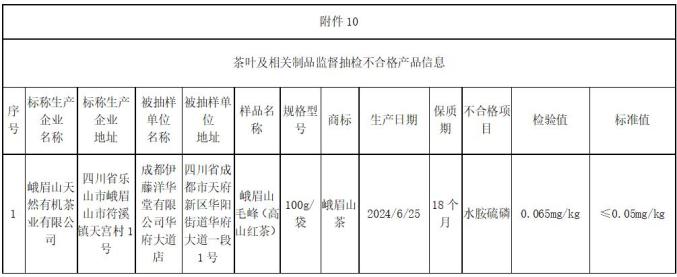 (一)四川成都伊藤洋华堂有限公司华府大道店生产的峨眉山毛峰(高山红茶),由四川省乐山市峨眉山天然有机茶业有限公司销售,其中水胺硫磷残留量不符合国家食品安全标准。