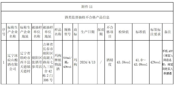 淘宝老实人保健酒(经营者为吉林省长春市朝阳区张酒哥参茸店)在淘宝(手机App)销售的玛枸品牌植物露酒,标称辽宁冰竹山酿酒有限公司,其酒精含量不符合商品标签的要求。