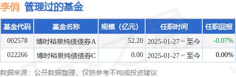 博时裕昂纯债券A基金经理变更:增聘李俏为基金经理