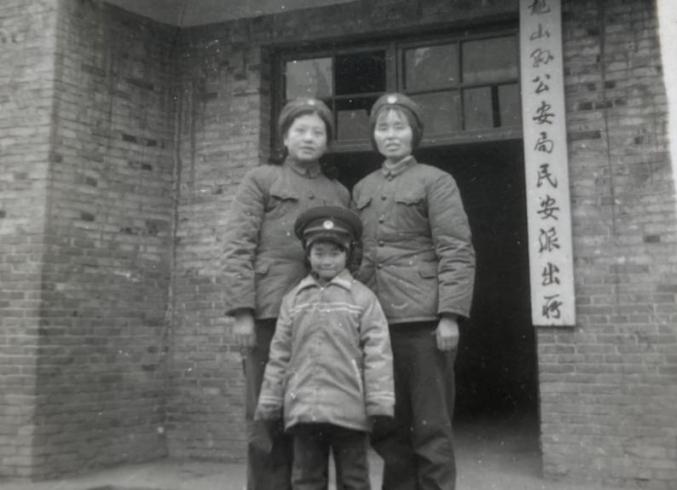 ▲与母亲(右)在民安派出所原址门口合照(中)与母亲(右)