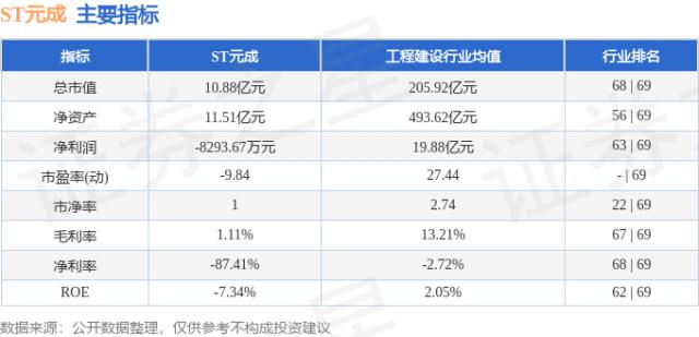 ST 以下是元成的主要指标和行业排名: