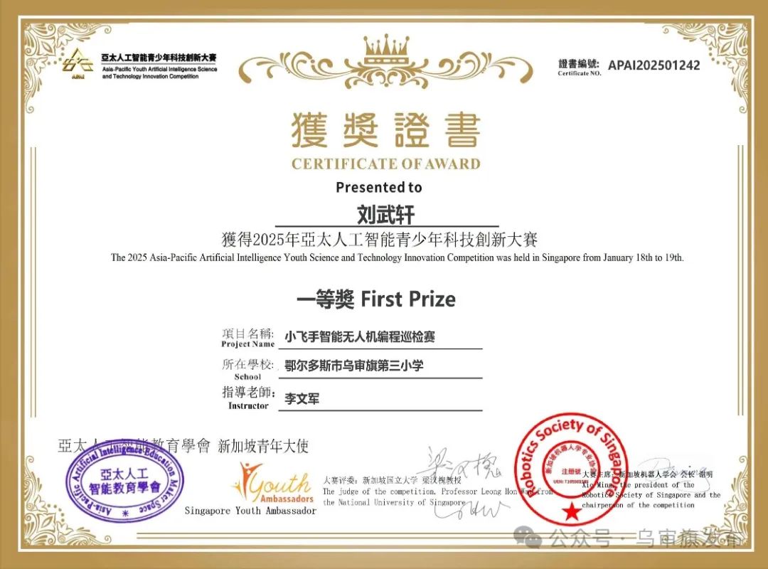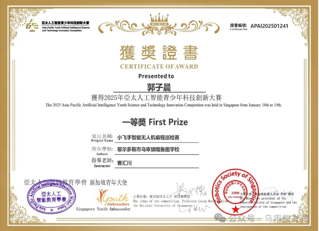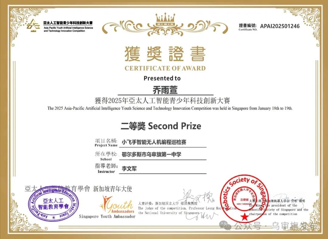 好消息!三个学生乌审旗在国际比赛中获得2金1银!