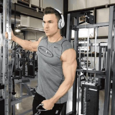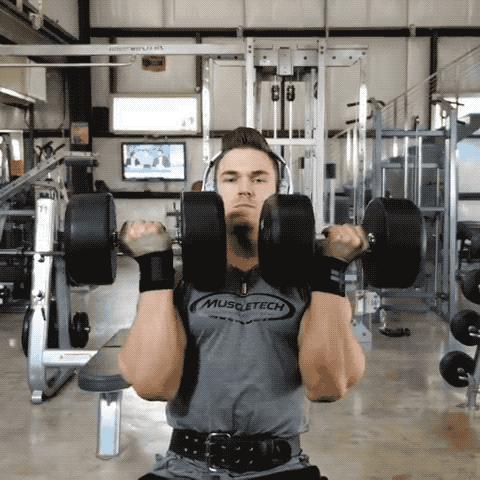 锻炼目标:三角肌前束、中束、肱三头肌。