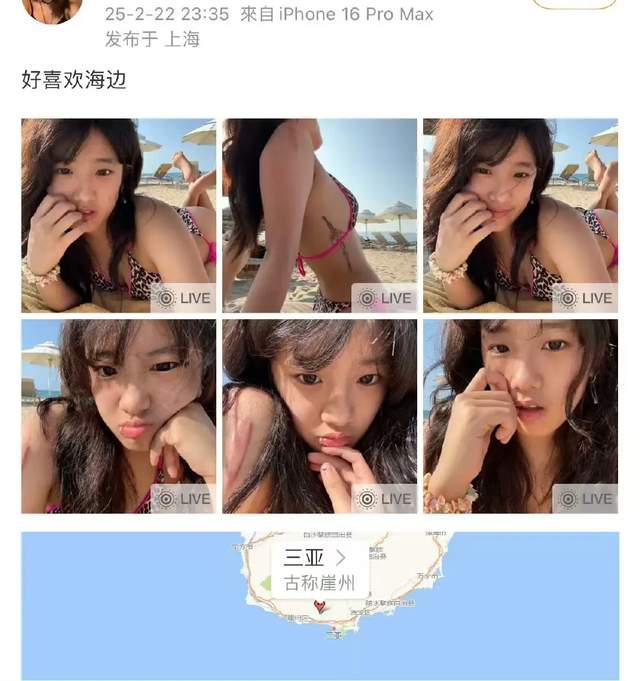 “冻龄女神”贾静雯 19 大女儿梧桐妹在自己的社交媒体上拍了一组比基尼在三亚度假的辣照,并附上了一篇文章:“我好喜欢海边”,瞬间引起全网热议。