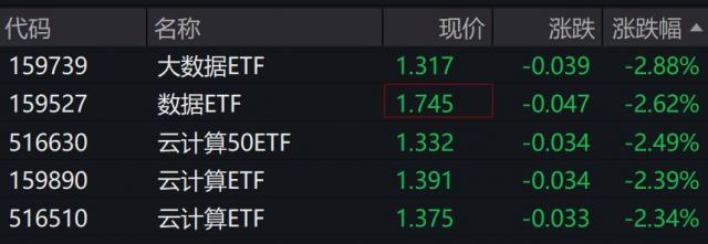 受重仓股调整的影响,跟踪中证云计算和大数据主题指数 ETF 跌逾 2%。