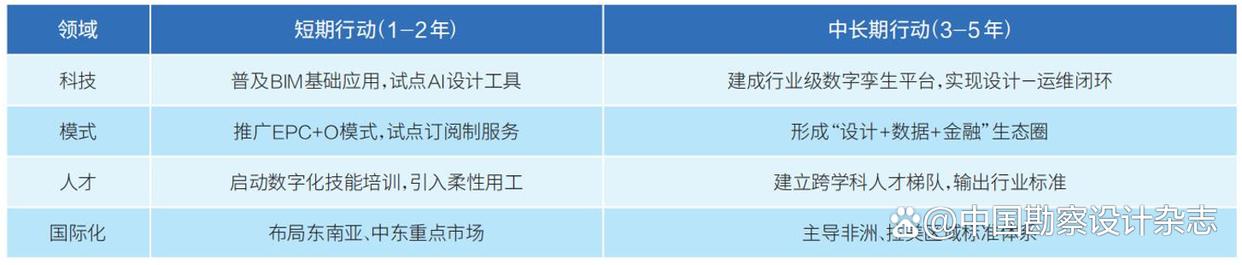答:针对目前勘察设计行业面临的问题和挑战,系统对策应从产品升级、模式创新、管理优化、政策协调等多个维度进行制定。以下是具体的战略建议: