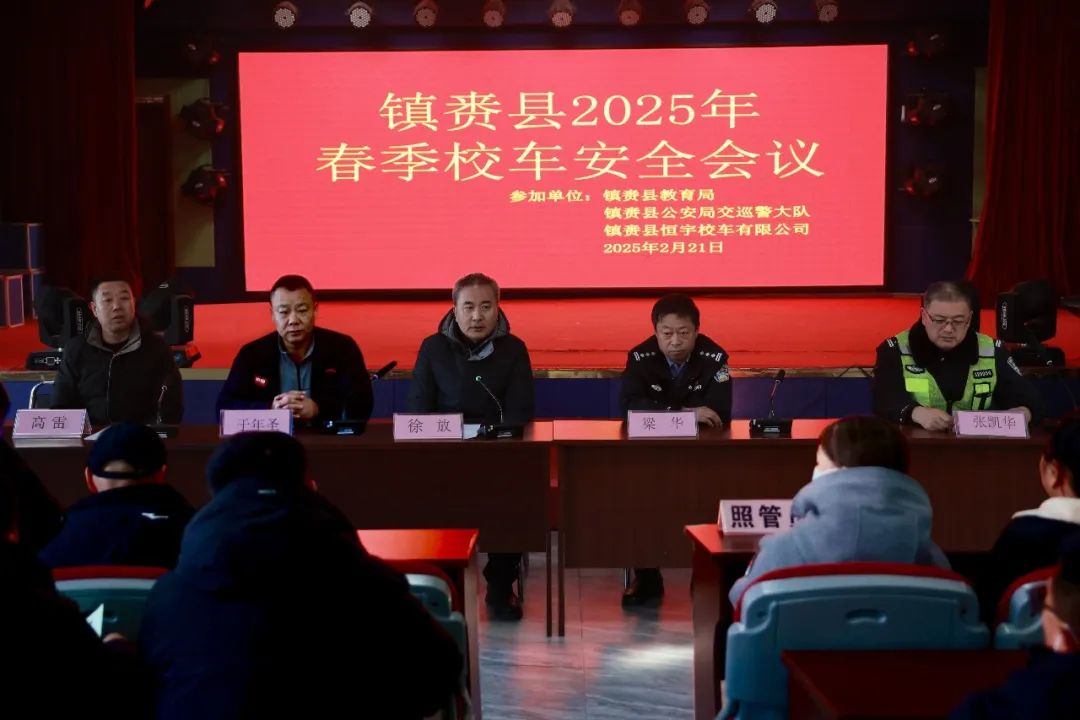 2月21日,镇县教育局与县公安局交通巡逻警察大队、县恒宇校车有限公司联合组织召开“2025年春季校车安全大会”。100多人参加了会议,包括教育局、公安局交通巡逻大队、校车公司负责人、校车司机和照顾者。