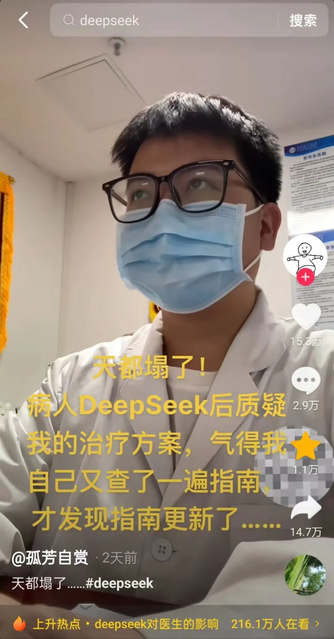 日前,广东某医学博主“孤芳自赏”曝光,自己的病人用DeepSeek提供的治疗方法对自己提出质疑。