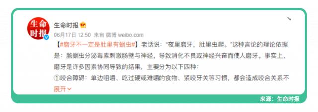 很多父母对“晚上磨牙,肚子里爬虫”这句话深信不疑!