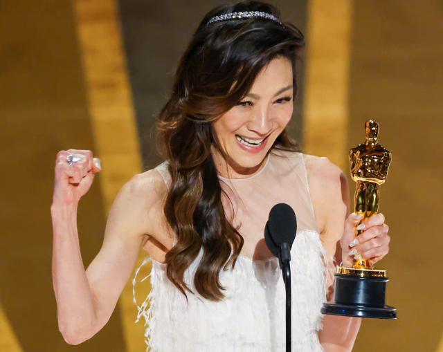 60 年杨紫琼手持奥斯卡奖杯,拒绝掩盖眼角皱纹和肱二头肌:我的年龄和力量,是闯过父权地雷阵的徽章。。"