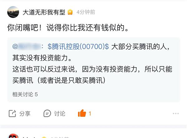 买腾讯的人没有什么投资能力。 段永平怒气冲冲:你闭嘴吧? 比我还有钱
