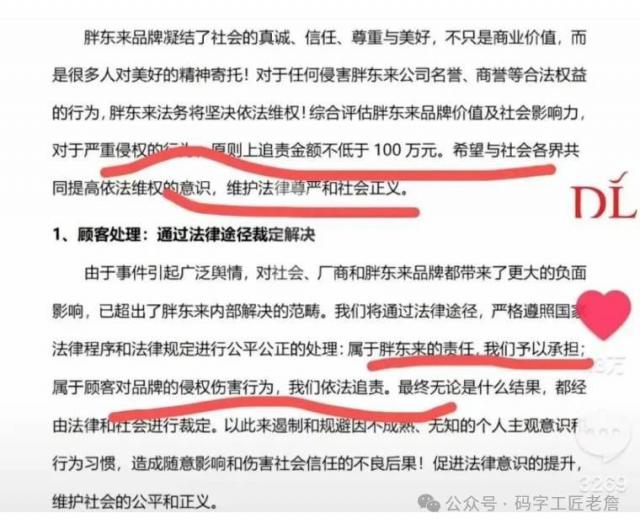 2. 硬刚碰瓷:同时,胖东起诉涉案博主,拟索赔。 100 万元,