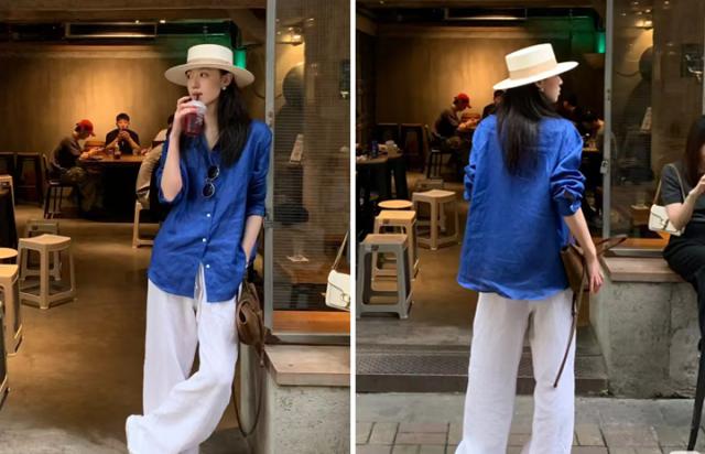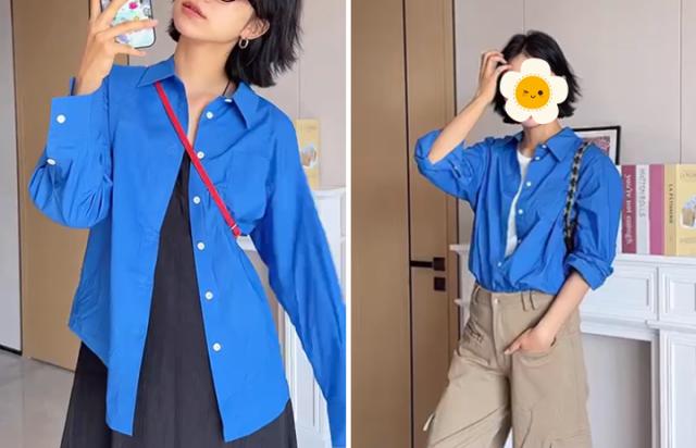 特别是在春天和夏天,穿一件蓝衬衣,可以让你的气质更干净、更高级。
