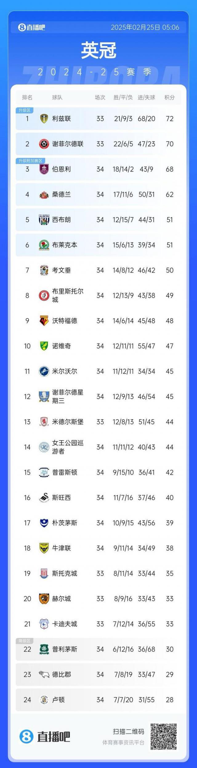 直播吧 2 月 25 日讯 在担任考文垂主教练后,兰帕德取得了优异的成绩,数据机构 opta 据超级计算机预测,兰帕德将带领考文进入本赛季英冠升级的附加赛。