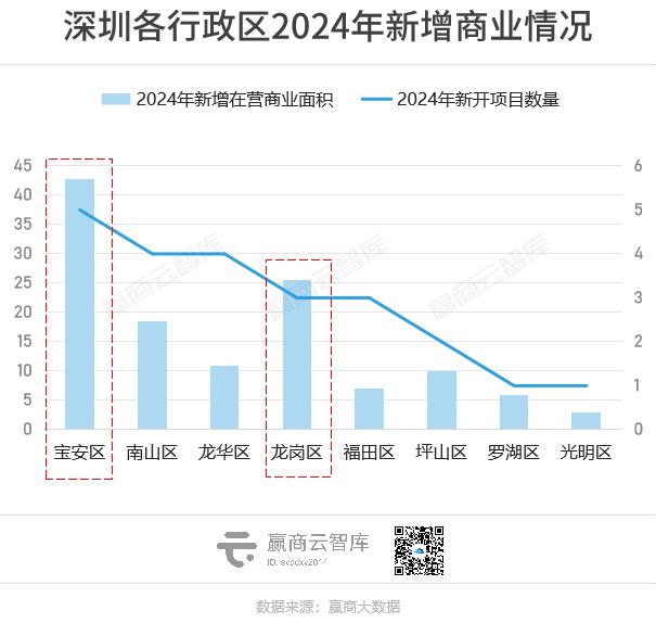 就商业规模而言,宝安区、龙岗区各新增商业42.7万元㎡和25.5万㎡,位居全市第一、第二。