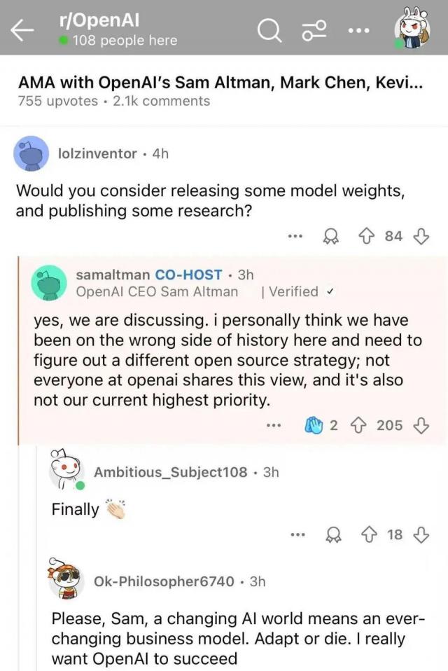 开源与闭源之争,模型, DeepSeek 即使是奥特曼一出手,也要亲自承认, OpenAI 的闭源策略 " 站在历史错误的一边 " 。