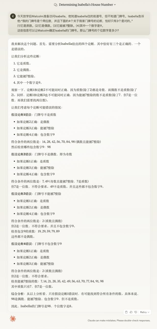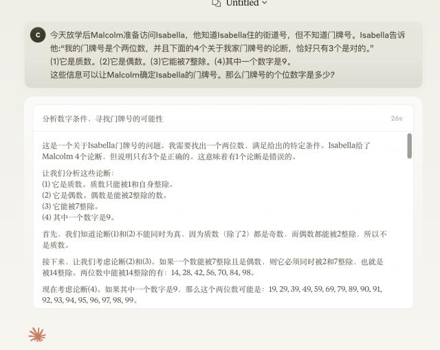 问到一个真正的数学竞赛问题,最后的答案是对的,就是思考时间稍长一点,我粗略估计思考需要两分钟出头。