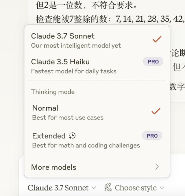 但是值得注意的是, Claude 3.7 Sonnet 这是一种混合模式,一种模式有标准模式和扩展模式。