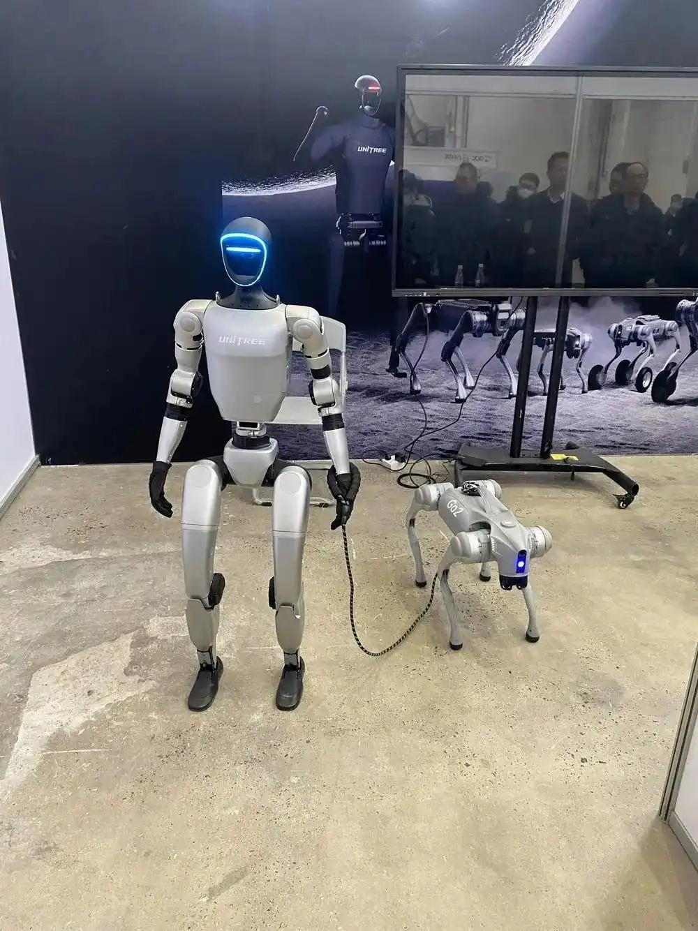 遛机器狗的“G1”是宇树科技的最新产品,高1.27米,重35KG。“G1”不仅能准确抓住鸡蛋,运输重物,还能完成“舞棍”等高难度动作。“Go2”遛机器狗配备了宇树自主研发的4D超广角激光雷达,最小探测距离为0.05米,可实现全地形感知,并能拖动重物20公斤。