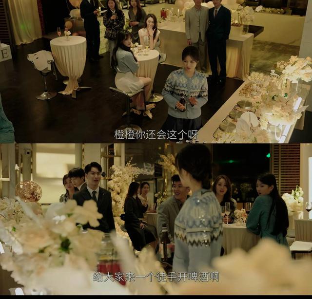 在暗恋对象唐奇被推来找苏橙橙打开瓶盖时,不幸瓶盖启动的那一刻,啤酒喷涌而出,喷了苏橙橙一脸。