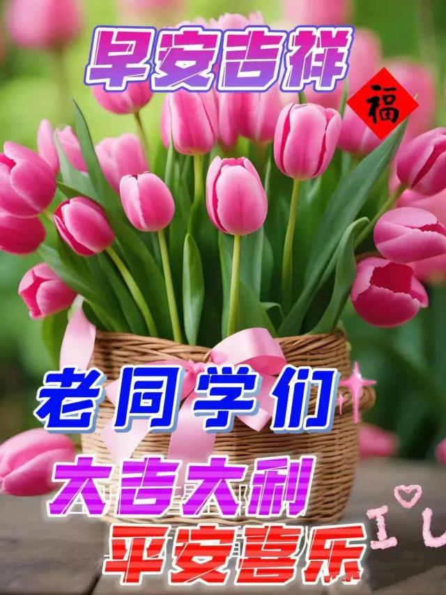 年过去了,春天来了,我送你一束春花!愿你在新的一年里,带着安全、健康、幸福、快乐、温暖、甜蜜、财富、好运和幸福度过每一天!早上好 ~!老同学,早上好!