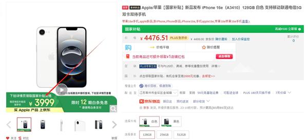 这当然不是说 iPhone 16e 本身产品实力差到完全无人问津,而在电商平台上却有着神秘的力量——国补。