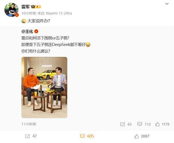 雷军:柯洁约自己下棋。 Deepseek说我输的概率是99.99%。