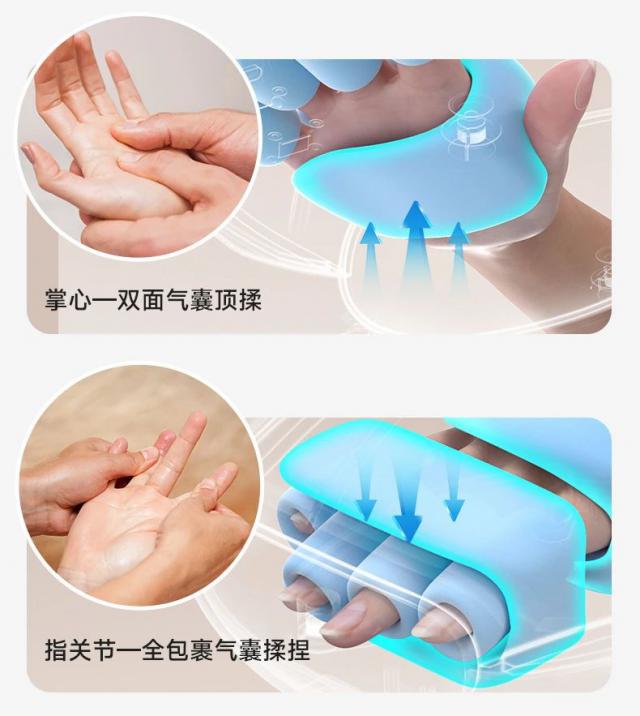 与传统的机械按摩不同,气囊 3D 按摩更温和舒适,对手没有额外的压力和负担。
