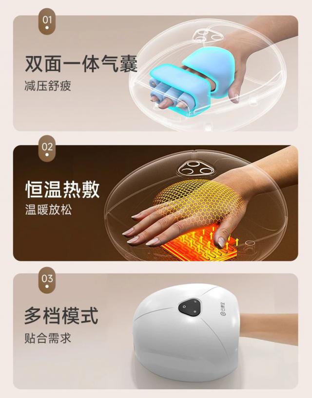 这款按摩仪可以为您提供舒适的放松和专业的护理,无论您是因为工作、学习还是锻炼而导致手腕疲劳。